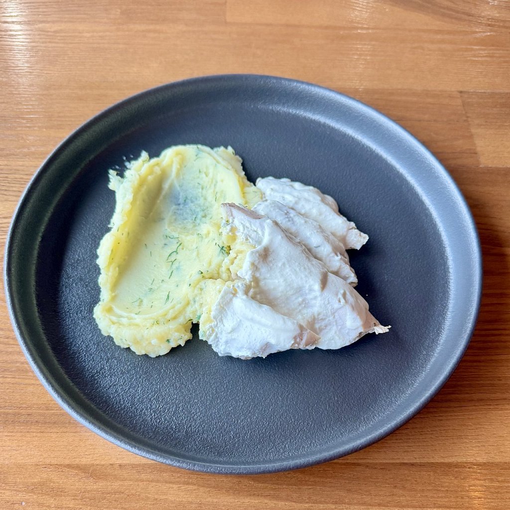 Б Стейк из куриной грудки с картофельным пюре и укропом