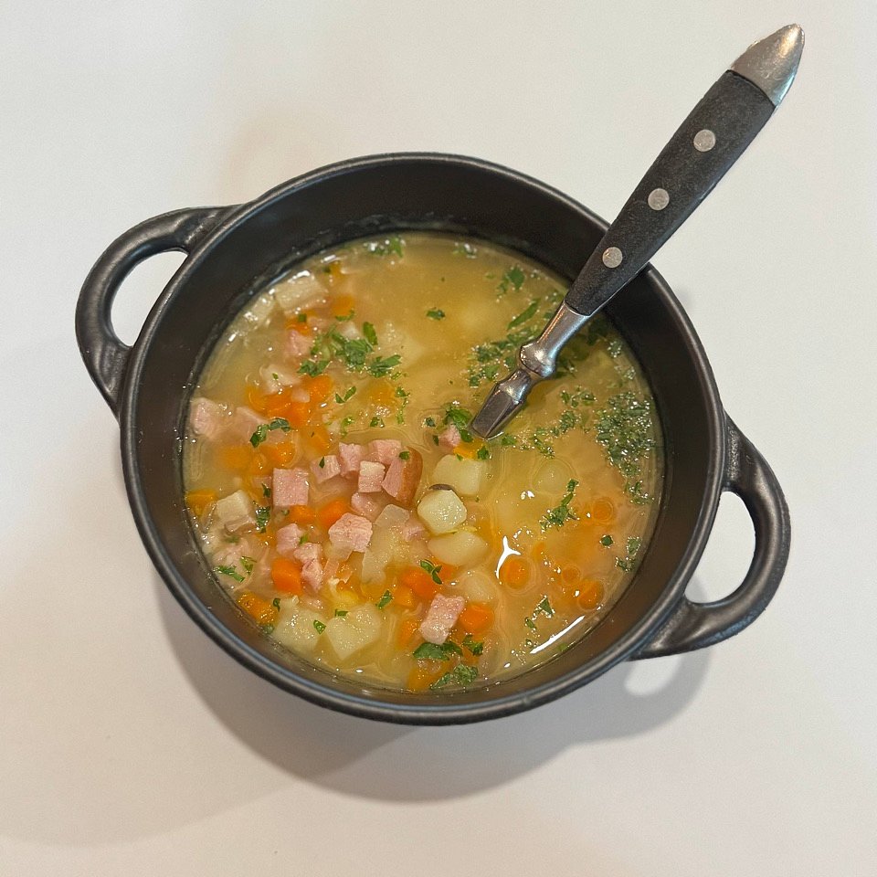 Состав: баранина, картофель бэби, болгарский перец, лук репчатый, морковь, зелень, грибы шампиньоны, квашеная капуста соль, черный перец, острый перец