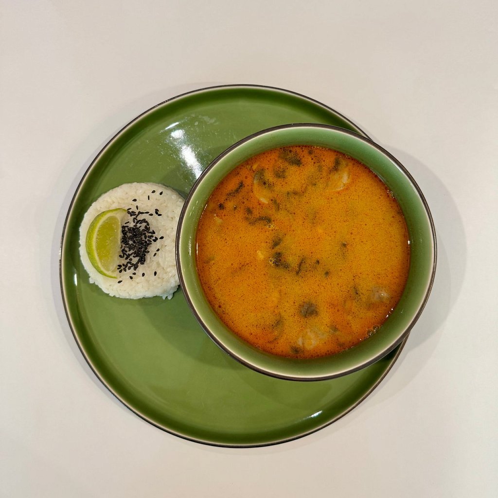 Состав: нори жареный в кляре, рис, сыр творожный, огурец, креветка, соус унаги, кунжут, икра тобико красная, лист бамбука.