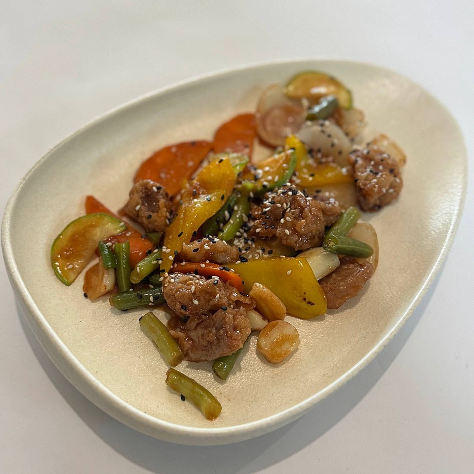 Состав: осьминог, осьминог бэби, кальмар, креветки, соус песто, сладкий чили, цветная капуста, маслины, оливки, лимон, тимьян