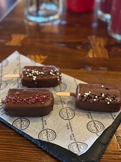Состав: нежная паста с сырами моцарелла, пармезан, дор блю и творожный сыр затянутая сливками, украшение чипсами из пармезана.