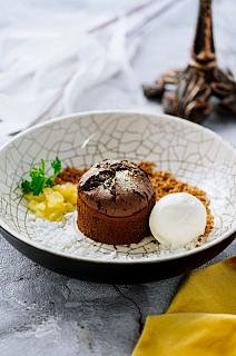 Состав: нежная паста с сырами моцарелла, пармезан, дор блю и творожный сыр затянутая сливками, украшение чипсами из пармезана.