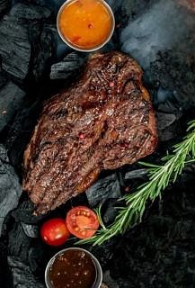 Обжаренные на гриле стейк из индейки, куриной грудки, свиная корейка, ростбиф, приготовленный методом сувид, запеченные свиные ребра в соусе порто и говяжьи ребрышки, обжаренная утиная грудка подается с овощами-гриль( шампиньоны, кабачок, баклажаны, болгарский перец, картофель) и отдельно к блюду подаем соусы-сливочный с Дор блю и сливочный с демиглас. Вес 1900 гр.