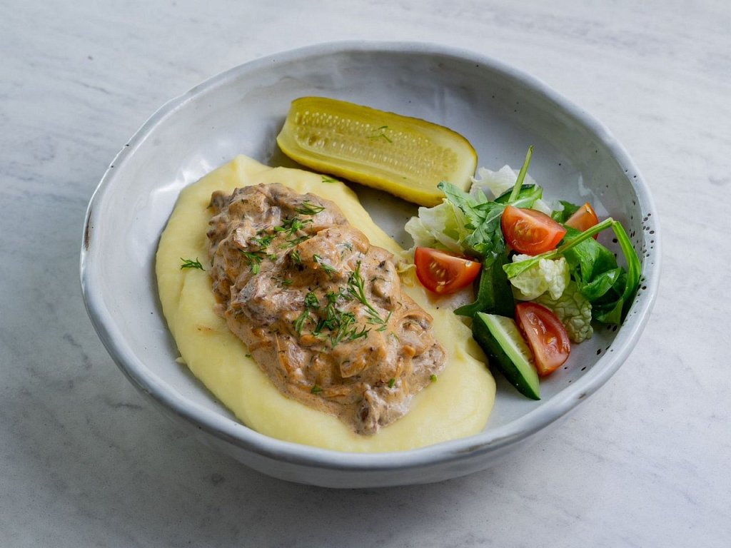 Состав: судак, грибы вешенки, грибы шампиньоны, картофель, сливки, соль, молотый перец.