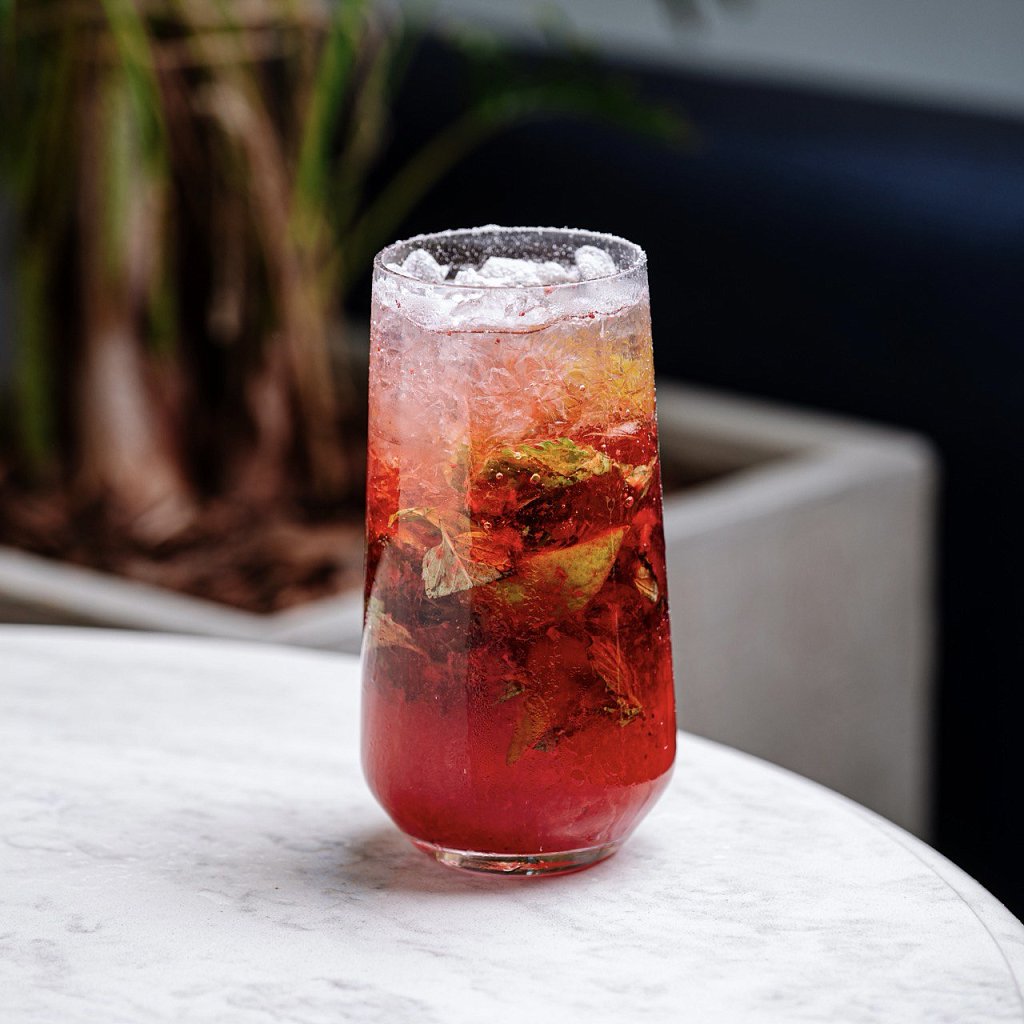 Голень баранины, приготовленная методом су-вид, глазируется соусом Деми-гляссе, медом, горчицей и подается с обжаренными овощами- баклажан, кабачок, болгарский перец, помидоры. В состав входит уксус винный и украшается кинзой