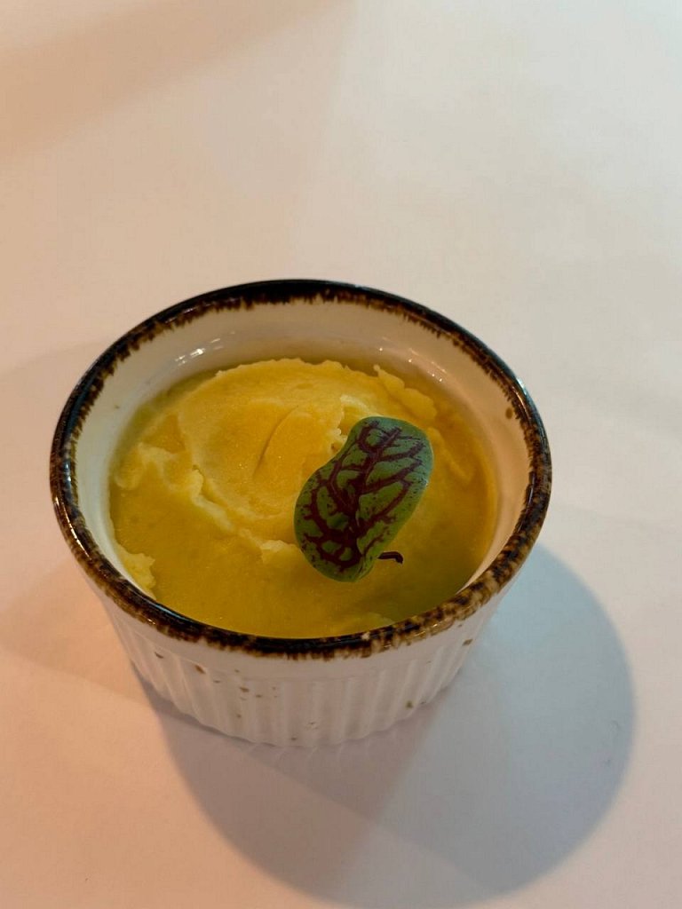 Состав: нежная паста с сырами моцарелла, пармезан, дор блю и творожный сыр затянутая сливками, украшение чипсами из пармезана.