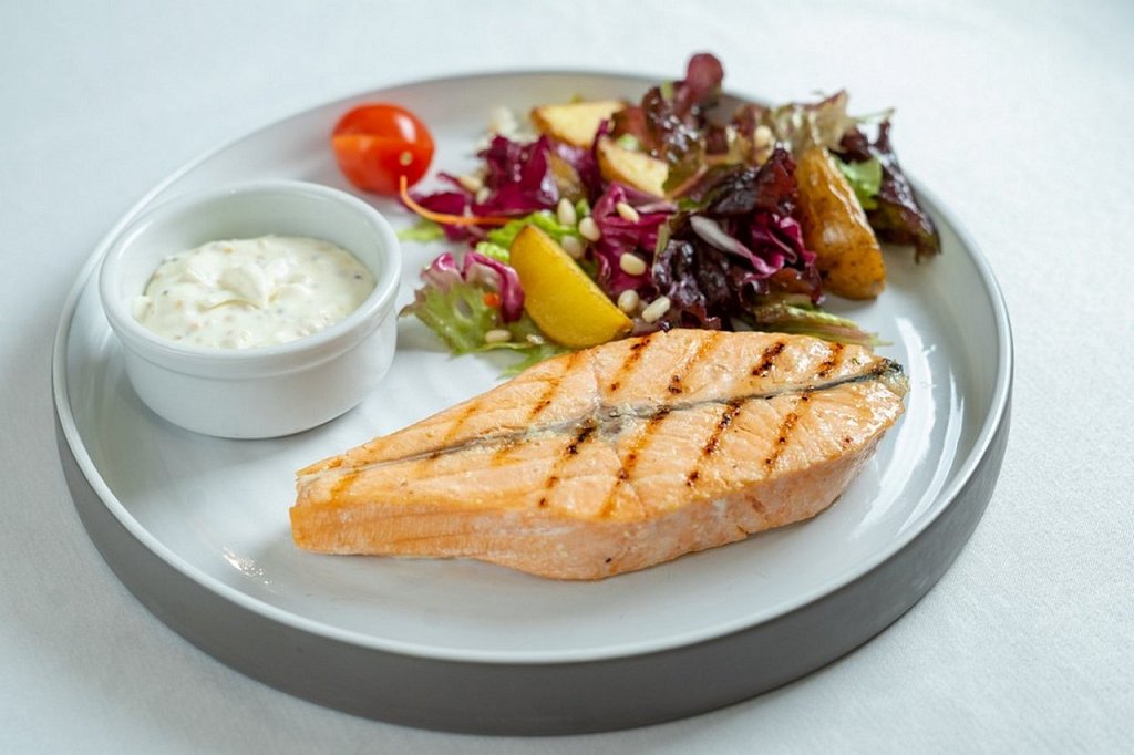 Ю Лосось со сливочно икорным соусом