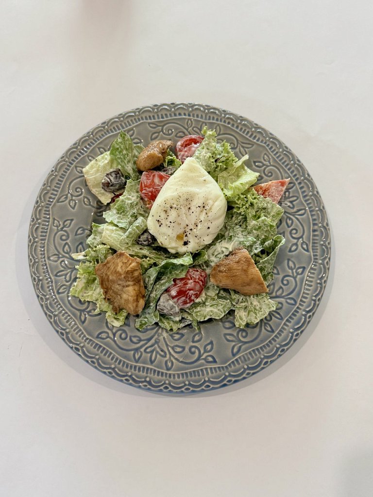 Состав: сливочный соус на основе пармезана сливок и куриного желтка, мортаделла, бекон,при подаче посыпаем сыром пармезан и украшаем шпинатом.