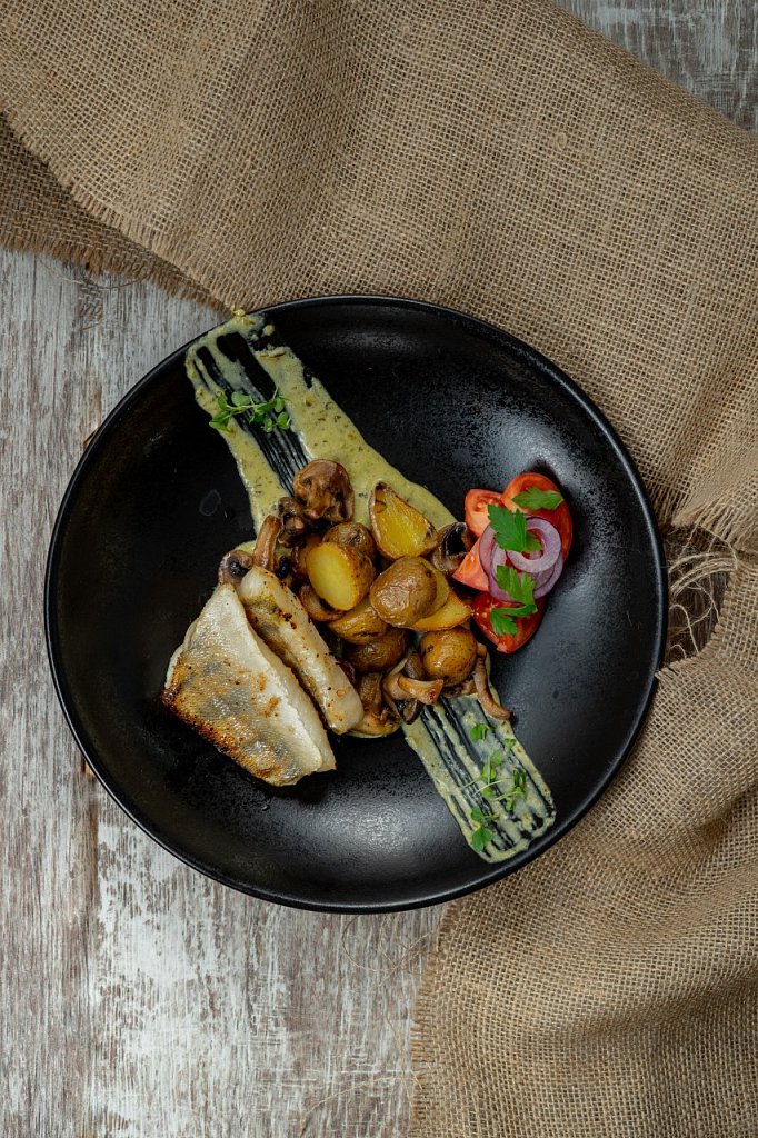Состав: судак, грибы вешенки, грибы шампиньоны, картофель, сливки, соль, молотый перец.