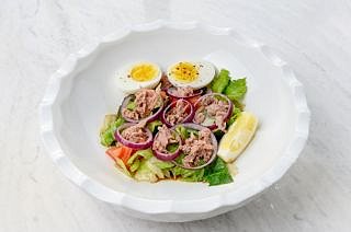 Состав : Салат с семгой и киноа с соусом на основе унаги 3 шт, Салат Цезарь с курицей 3 шт, Салат с говядиной с медово-горчичной заправкой 3 шт. Предварительный заказ за 4 часа.