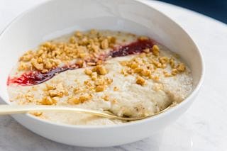 Состав: нежная паста с сырами моцарелла, пармезан, дор блю и творожный сыр затянутая сливками, украшение чипсами из пармезана.