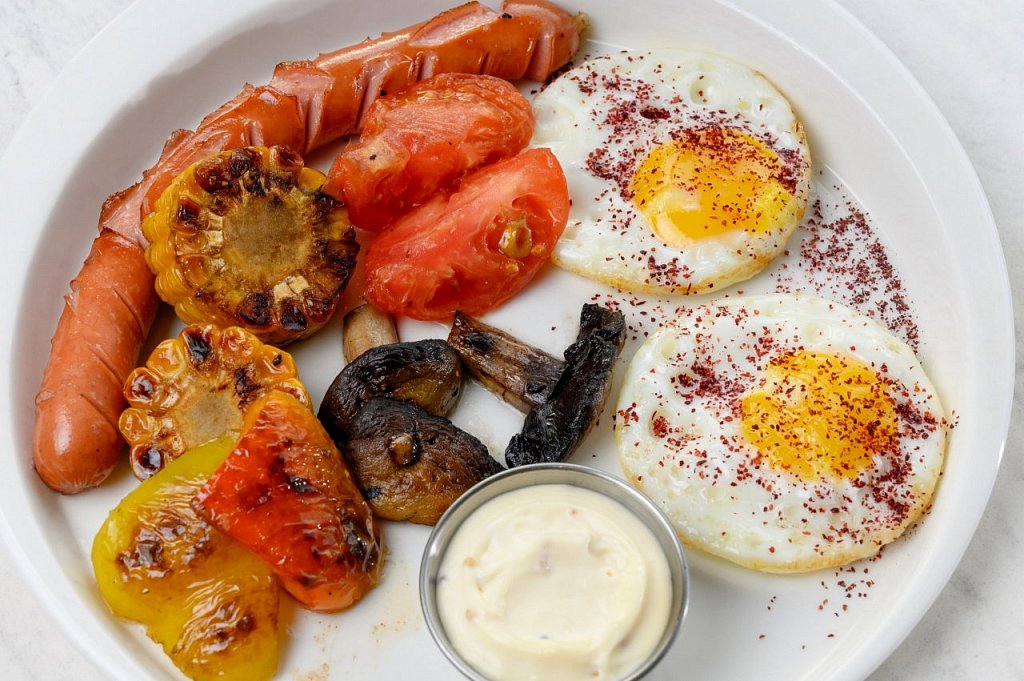 Обжаренные на гриле стейк из индейки, куриной грудки, свиная корейка, ростбиф, приготовленный методом сувид, запеченные свиные ребра в соусе порто и говяжьи ребрышки, обжаренная утиная грудка подается с овощами-гриль( шампиньоны, кабачок, баклажаны, болгарский перец, картофель) и отдельно к блюду подаем соусы-сливочный с Дор блю и сливочный с демиглас. Вес 1900 гр.