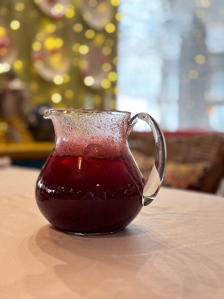 Состав: баранина, картофель бэби, болгарский перец, лук репчатый, морковь, зелень, грибы шампиньоны, квашеная капуста соль, черный перец, острый перец