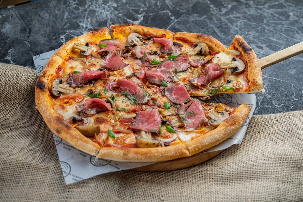 П Пицца с копченым ростбифом и сливочным соусом