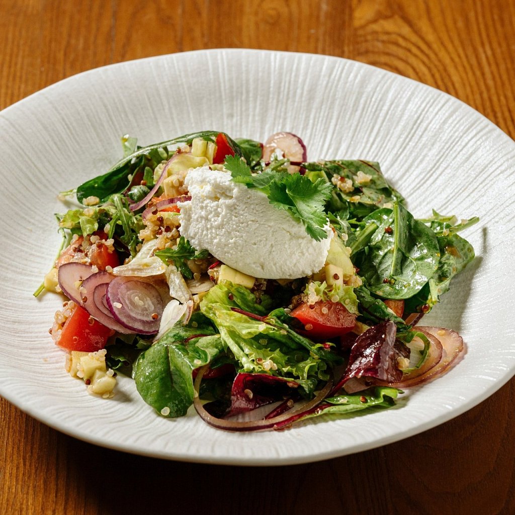 Состав: осьминог, осьминог бэби, кальмар, креветки, соус песто, сладкий чили, цветная капуста, маслины, оливки, лимон, тимьян