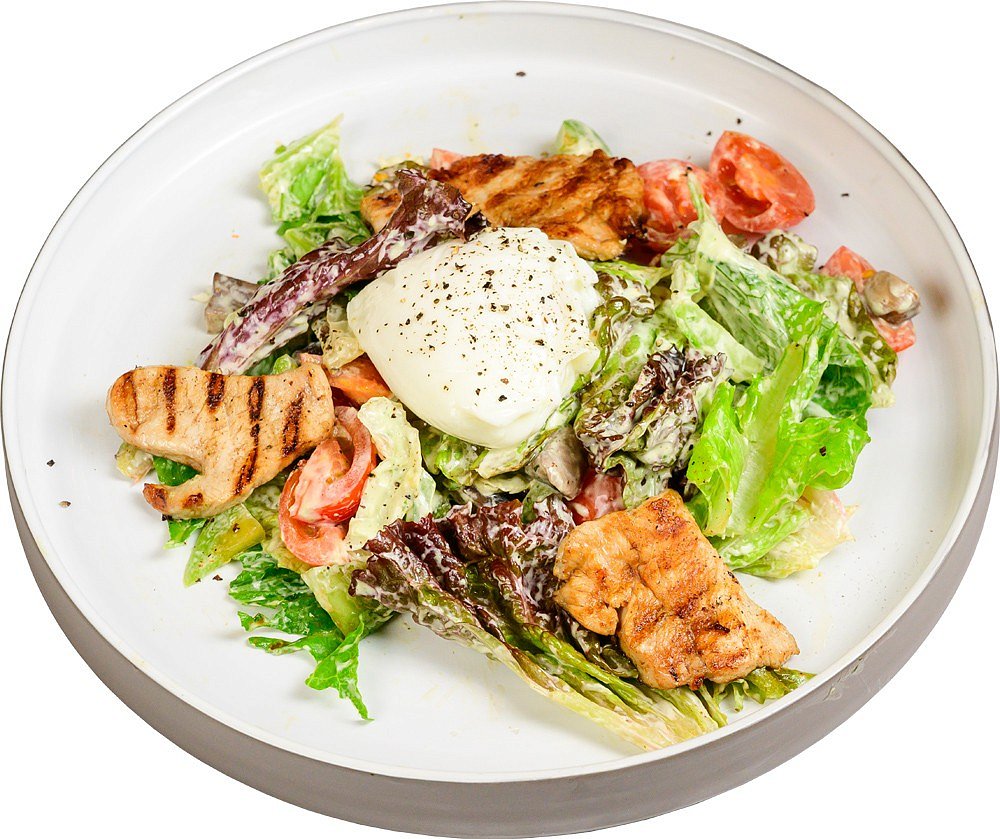 Состав: булочка, куриная котлета, красный лук, салат Айсберг, огурцы соленые, огурцы свежие, сырный соус, бекон, сыр чеддер.