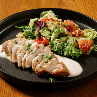 Состав: филе индейки, маринуется с добавлением кориандра, соли, перца, и чесночного масла обжаривается на гриле, поливается сливочно-кунжутным соусом и подается со свежими овощами-помидоры, огурцы, перец болгарский, авокадо, микс салата, киноа с добавлением соуса унаги