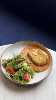 Состав: дорадо целая фаршируется обжаренным картофелем, подается с зеленым салатом из авокадо, свежих огурцов, микса салата и жаренных семечек подсолнуха и тыквы, заправляется ароматным маслом.