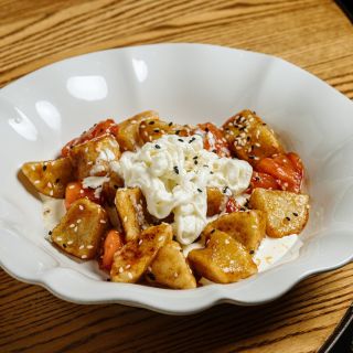 Состав: куриная печень, соевый соус, мед, микс салата, красный лук, помидоры черри.