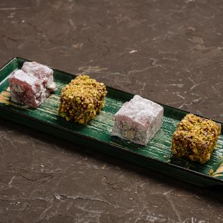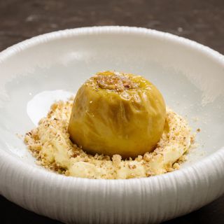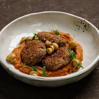 Состав: баклажан, помидоры, гранат, твороженный сыр, чеснок, зелень, микрозелень.