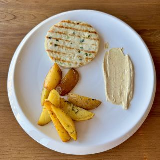 Состав: грудка цыпленка, сыр, брокколи, помидоры черри, картофельные дольки, сливки