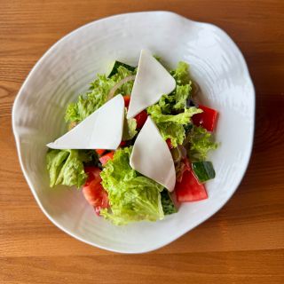 Состав: помидоры, огурцы, перец болгарский, редис, зелень.