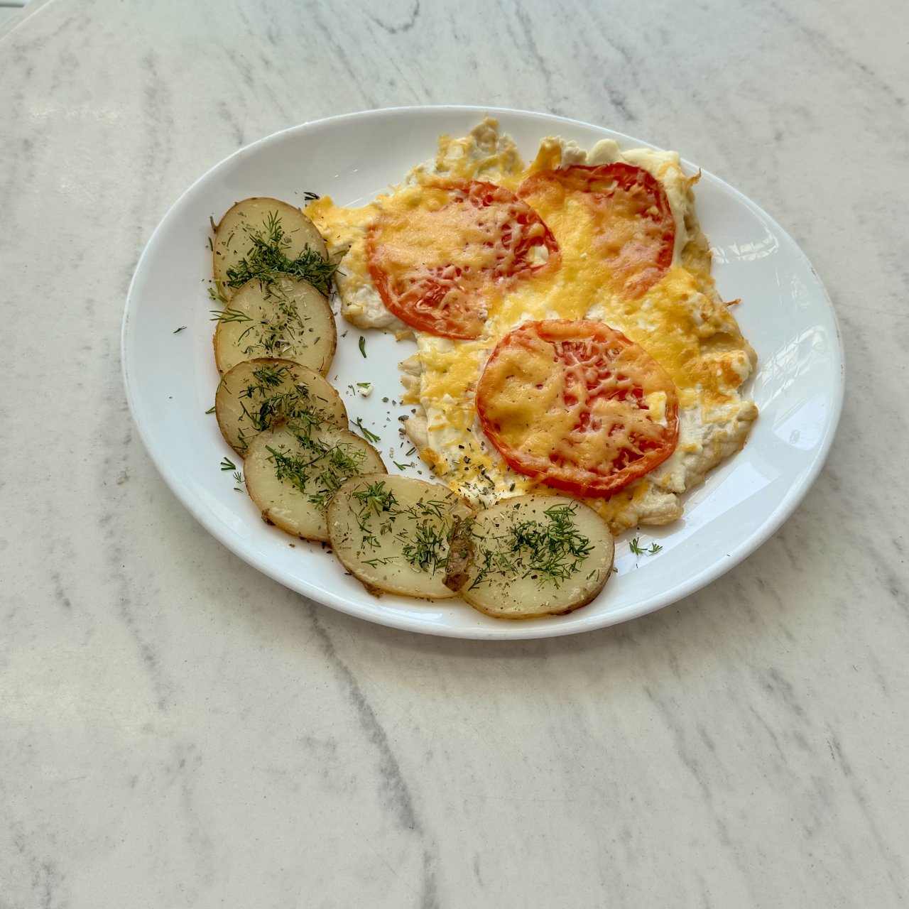 Состав: говядина, картофель, грибы вешенки и шампиньоны, вяленные помидоры черри, сливки, сливочное масло, сыр моцарелла, тимьян, зелень, чеснок свежий