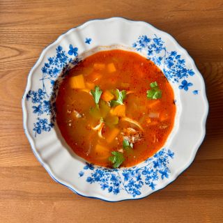 Состав: свиная корейка, лук репчатый, картофель, картофель бэби, грибы вешанки, сливки, тимьян, розмарин, микрозелень.