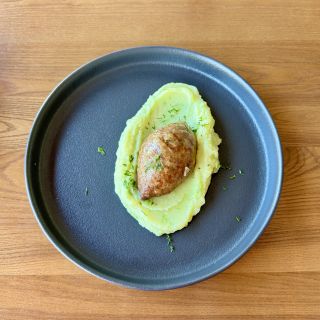 Состав: свиная вырезка маринуется в специях обжаривается со всех сторон до золотистой корочки, гарниром идет картофель беби, цветная капуста, вешенки и маринованные опята, украшается листьями молодого шпината и красиво отсаженными калями укропового айоли,украшается микрозеленью.